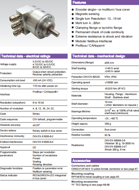 接口:現(xiàn)場總線 / CANopen®/   分辨率(脈沖數(shù)/圈):9 至 16 位